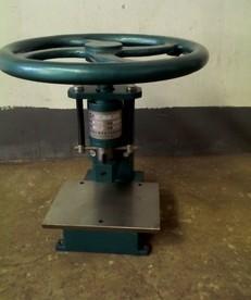 机身螺孔中装有三头丝杆,丝杆的上端装有手轮,作旋转丝杆用其下端轴架中套有滑动的轴,上端利用弹簧拉紧,下端平台上可换不同型号的切刀。当旋转手轮时,三头丝杆经滑动的轴带动切刀,可作往复运动,以达到冲切试片之目的。