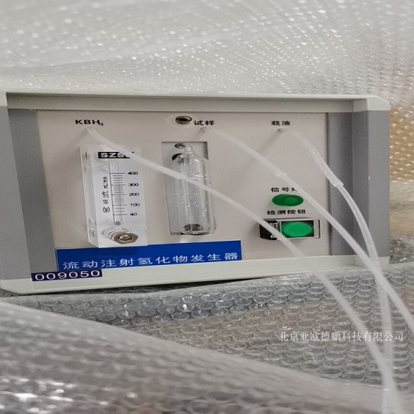 间歇式流动注射氢化物发生器 型号DP-08W 间歇式流动注射氢化物发生器 概述 本型发生器属间歇式流动注射氢化物发生器须与原子吸收分光光度计( 主机 )配合使用, 用氢化物原子吸收法测定试样中痕量砷、硒、锑、铋、铅、 锡、隔、 碲、锗和冷原子吸收法测定汞。 工作情况:用载气压力作为自动稳流, 按下电源启动键, 自动定量吸入三种溶液(载液、试样、硼氢化钾),吸满后发出读数信号,载液推动试样溶液与硼氢化钾溶液开始稳流流动, 会合后产生反应进入气液分离管,生成的氢化物被载气带入电热石英吸收管原子化,废液从气液分离管底部自动排出。 间歇式流动注射氢化物发生器 点: 〔1〕电子元器件控制气动程序:定时定量自动进样、清洗、稳流反应。 ⑵ 只用一个启动键,按一下即可完成进样、发生、测定、清洗全过程,可以与主机联机自动读数(主机须有此功能)。 ⑶ 电热石英吸收管(原子化器):装置(可用于塞曼型主机上的吸收管), 安装方便,温度稳定 ⑷大部分可测氢化物元素于1ug/L/1%A,例如砷于0.18ug/L/1%A, 大约相当于固体试样中0.15ppm;相对标准偏差(RSD):厂控指标小于4%;单次测定时间约35秒。 ⑸ 新老型号原子吸收主机都可配用。 ⑹ 故障率低,基本没有易损件。 ⑺ 体积( 主机约2kg ),安装方便。 ⑻ 可适用多种读数方式:峰高读数(好采用此种方式), 峰面积读数,连续读数。 ⑼ 溶液用量少-试样溶液2-2.5mL( 包括清洗 );硼氢化钾溶液 1-1.5mL;载液4.5-5mL。