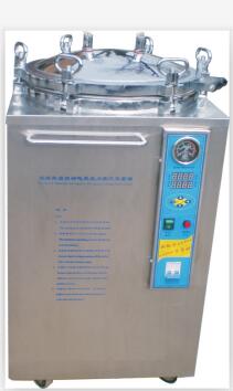 立式压力蒸汽灭菌器技术参数 灭 菌 容 积:100L 额定电压:220V±10% 4.0KW 内腔尺寸:直径388mm*高740mm 外形尺寸:长490mm*宽490mm*高1070mm 高工作压力:0.22Mpa 工作温度:0-134℃ 电 源 电 压:220V 50Hz 电 热 管 功 率:4.0KW 压自泄0.22Mpa 断水保护控制 微电脑控制程序 灭菌温度、时间可自行调节 自动排放冷汽,灭菌完成自动排放蒸汽 计时范围:0~9999分钟 可直观显示灭菌温度和时间 硅橡胶密封圈 指示灯提示工作状态 双刻度二类读数压力表 SUS304)材料