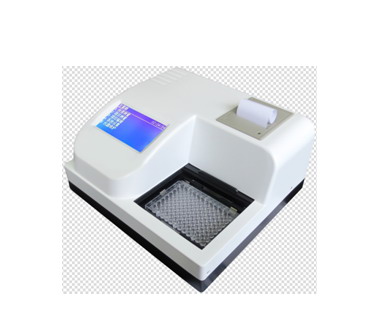 酶标仪仪器技术参数 1. 光普范围:400~750nm; 2. 滤光片:共计8个滤光片;(标配 405nm、450nm、492nm、630nm),预留4个; *3. 线性系数:r≥0.999; *4. 准度:ΔA≤±0.01(0≤A<1.0);ΔA≤2.5%(A≥1.0); *5. 重复性:≤0.2%(0≤A≤1.5Abs);≤1.0%(A﹥1.5Abs); 6. 稳定性:±0.003 Abs; 7. 八通道差异:≤0.02; 8. 灵度:±0.003Abs; 9. 吸光度范围:0.000- 4.000Abs; 10. 分辨率:0.001Abs; 11. 电压 :AC 220V, 50Hz/60Hz; 12. 振板:3 种速度(高、中、低); 13. 可适用的微孔板型:96 ,48孔板”平”,”U”,”V” 底; 14. 工作环境:电源AC220V,50HZ;工作温度,10℃-30℃,工作湿度,≤85%; 15. 接口:1个1个RS232; 16. 8通道光纤测量系统,双波长测试自动调零;单波长:5秒/96孔,双波长:10秒/96孔; 17. 光源采用卤钨灯; *18. 240×128点阵液晶显示器(触摸屏),自带微电脑系统,无需外接电脑;操作简单,每步均有中文提示; 19. 96孔可视化布板,一次多可检测96个样品,全自动进样; 20. 大容量数据存储200个分析程序,测试结果1000盘测试结果,断电数据自动保护; *22. 内置57mm 打印机; *23. 仪器内置吸光度法、系数浓度法、标准浓度法、多点标准法、标准直线法、+/-单限检测、-/O/+双线检测、、列减法等计算方法; *24. 内置仪器使用教程、商品编码库以及对应检测项目的标准,自动计算检测结果和判断检测结果; *25. 仪器尺寸32x29x17cm(长x宽x高);净重6.5Kg。