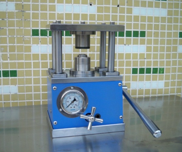 纽扣电池液压封口机 产品点 1)可置于手套箱内操作; 2)液压结构; 3)内嵌式压力表,控制封口压力的大小; 纽扣电池液压封口机技术参数 1)封装压力:0~200Kg/cm2(出厂压力设定在80 Kg/cm2) 2)手摇杆操作力度:<6Kg 3)模具:标准配置可以封装CR20系列纽扣电池 4) 尺寸:305*176*310mm 5) 净重约:25Kg