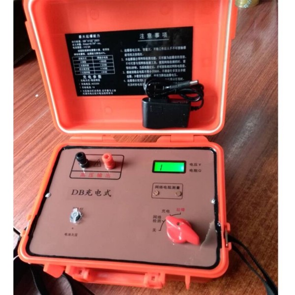 充电式起爆器 爆破器技术参数 起爆电压:1980V ±5% 储能电容量:≥10UF 大起爆能力:工业电雷管800发 充电时间:≤50S 工作电源:锂电充电(直流8.4V) 网络电阻检测范围:0-1999Ω±1%