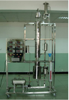 .筛板式精馏实验装置主要功能: 1.熟悉连续精馏塔的基本结构及流程; 2.学会测定板式精馏塔全塔效率和单板效率; 3.观察检测筛板塔中灵敏板温度的变化; 4.了解铂电阻测定温度的原理和方法,了解实验数据的自动采集方法。 二.筛板式精馏实验装置设计参数 1.体系:乙醇-水;操作压力:常压操作; 2.料量:4~10 l/h; 3.全塔效率:30~50%,单板效率:30~50%。 4.装置外形尺寸:对象部分:设备主体 1820×710×2600;*塔体 Ф60×1500; 5.测控部分:温度显示于控制柜之上; 三.筛板式精馏实验装置公用设施 水:装置需冷却水,自带和自来水管相连的接口,自来水通过装置接口及转子流量计入塔的冷凝器后排出; 电:电压 AC220V,功率 3kW,标准单相三线制,每个实验室需配置 1~2 个接地点(安全地及信号地); 气:无; 实验物料:乙醇、去离子水。 四.筛板式精馏实验装置主要配置及参数 1.料液槽:1只,不锈钢材质制; 2.料液泵:磁力驱动循环泵,扬程 1.5m,流量 8L/min; 3.料液换热器:外壳,不锈钢材质;换热蛇管,紫铜材料; 4.电加热管,铜材质。 5.塔体:由15 块带降液管筛板,个硼硅玻璃视盅组成; 6.塔:个冷凝器,外壳,不锈钢材质;换热蛇管,紫铜材料; 7.控制柜:带漏电保护空气开关,仪表及料液泵电源; 8.不锈钢框架(配脚轮均为向轮带禁锢脚); 9.在线监控:工业组态软件套、在线监控软件套;数据处理:数据处理软件套;