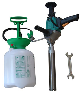 水泥枕螺栓钻取器 是一种快速取水泥枕内损坏螺栓的机具。其工作原理采用空心钻头直接与单项调速电机连接,经电机驱动空心钻头旋转而将水泥枕内损坏螺栓周围的锚固浆钻削掉,使螺栓与水泥枕脱离而自动取出。携带方便、操作简便、上下道速度快、钻头易定位和使用效率高等,适用于铁路工务、工程、大修段等单位在线路上进行更换水泥枕螺栓使用。
