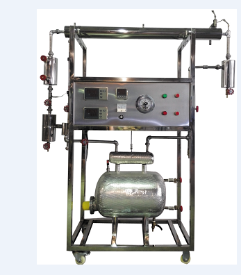 电蒸汽锅炉、套管换热器、蒸汽冷凝罐、蒸汽及水流量测试设备、加热由固态调压模块无极调节,由多路巡检仪显示的温度测试系统,不锈钢台架及控制屏等。