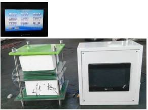 四、非[准]稳态导热仪,导热仪技术参数 1、加热器阻值12Ω,发热功率12W,两片误差≦±1‰; 2、稳压直流电源:0—20V可调;保温块厚度100mm; 3、显示屏:彩色触摸式液晶显示屏; 4、温度传感器(达拉斯半导体),单总线数字温度计,在-20~300℃温度范围内精确度为±1℃; 5、温度传感器(达拉斯半导体),单总线数字温度计,在-20~300℃温度范围内精确度为±1℃; 五、产品规格与附件 1、主要配置:有机玻璃框架,四柱电镀螺拴连接固定件,双层苯板保温块,有机玻璃试件,两片加热器;0—50V稳压直流电源供电,数显电位差计直接显示温度和mV,D51型瓦特表测量功率,可配不锈钢操作台、数据釆集集控管理系统、彩色触摸式液晶显示器、实验数据处理软件。 2、外形尺寸:500×400×500mm