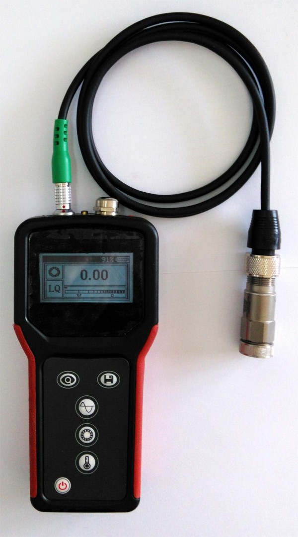 轴承状态检测仪 型号:DP28722 轴承状态检测仪采用振动滤波的方法来对滚动轴承的运行状态进行检测分析评价,无需输入任何参数,特殊的检测滚动轴承状态方法(LQ方法)能够判断滚动轴承运行状态,同时可以测量振动和温度,适合电机、泵和风机的现场检测,使用简便。 轴承状态检测仪参数 振动检测: 频率范围:5~1000 Hz 测量范围:加速度: 0 ~ 200 m/s2(峰值) 速度: 0~200 mm/s(有效值) 位移: 0~2.0 mm(峰-峰值) 轴承状态检测:测量范围:0~20 mm/s, 频率范围:600 Hz ~10k Hz 红外温度测量范围:-40 ~+125℃ 数据存储功能:50个数值存储 LQ方法:检测滚动轴承状态的方法 滚动轴承检测理论和实际测量表明:滚动轴承的故障频率集中在高频范围,LQ方法是测量600 Hz 至10kHz频带的振动并进行特殊处理,所有由机械故障如不平衡和不对中引起的振动都被带通滤波器所过滤。LQ方法也反映轴承润滑状态,润滑不良会导致LQ值增大。机器转速、功率和轴承尺寸对LQ值几乎没有影响。 DP28722 定义轴承运行的两个状态,好和差 1.好的轴承状态和润滑状态,LQ值<1,继续运行。 2.差的轴承状态和润滑状态,LQ值>2,更换轴承。
