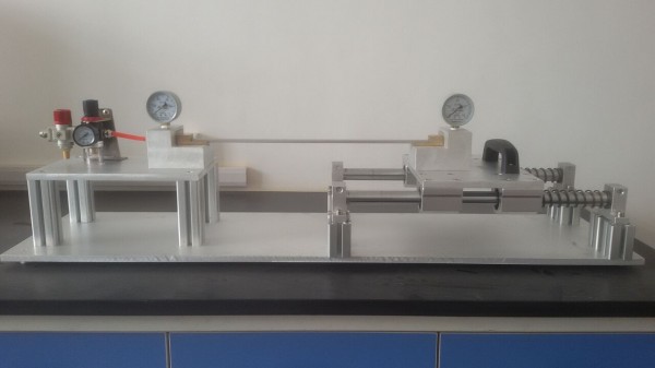 气孔通透性检测仪 型号:DP28701 气孔通透性检测仪是铝、不锈钢等材质中空玻璃间隔条气孔通透性的测试仪器。 一.气孔通透性检测仪设备介绍 本仪器采用气压差原理,测试中空玻璃间隔条气孔通透性能。中空玻璃间隔条使用铜质固定模块固定在气孔通透性检测仪上,并通过弹簧将间隔条夹紧,间隔条两端采用硅橡胶胶垫避免气体泄漏,调节进气口压力,记录进气口压力和出气口压力,计算气压差。 二、气孔通透性检测仪规格及主要技术参数 1.调压压力表压力范围:0~1 MPa; 2.进气口压力表压力范围:0~1 MPa; 3.出气口压力表压力范围:0~0.4 MPa; 4.调压压力表分辨率:0.02 MPa; 5.进气口压力表分辨率:0.05 MPa; 6.出气口压力表分辨率:0.02 MPa; 7.样品尺寸: 500mm; 8.设备标准配置间隔条固定模块型号:6mm,9mm,12mm,16mm。 三.气孔通透性检测仪使用步骤 1. 选择与间隔条样品同样规格的铜质固定模块; 2. 使用螺栓将铜质固定模块固定在气孔通透性检测仪上; 3. 拉动塑料把手,压缩弹簧,将间隔条样品插入铜质固定模块中; 4. 打开空压机,调节进气口调节阀,使进气口压力保持在0.5MPa; 5. 记录出气口压力; 6. 进气口压力减去出气口压力,得到气压差。 四.使用环境: 1、使用环境温度: 10℃ ~ 40℃; 2、使用环境湿度: < 80 %。 注:空气压缩机需用户自行选配,储罐压力应大于 1.1MPa;如需其它型号间隔条固定模块请提前告知。